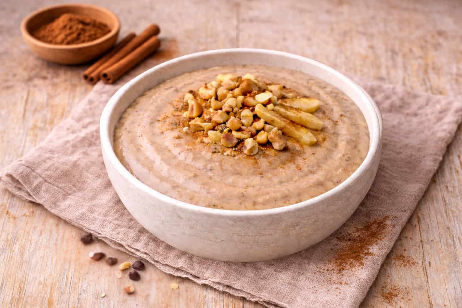 Najbolj kremasta ovsena kašica s cejlonskim cimetom, kokosovim sladkorjem in mletimi chia semeni, nam pričara okus cimetovih rolic, ki se v obliki kremaste kašice kar stopijo v naših ustih.