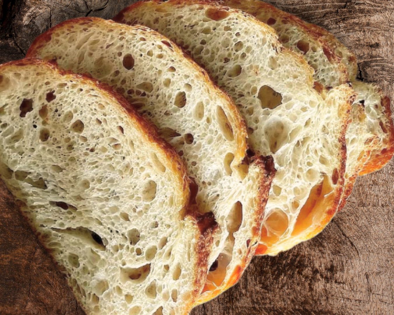 Testu sem dodala še žlico olivnega olja, ki poskrbi za mehkejšo sredico in prijetno skorjo. Nastane kruh z izrazitejšim žitnim okusom in značilno rumenkasto barvo, ki se lepo poda k preprostim namazom ali kot dodatek enolončnicam.